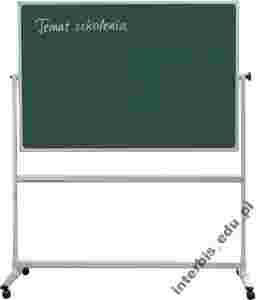 Dwustronna zielona tablica obrotowa o nowoczesnym wzornictwie. Powierzchnia lakierowana lub ceramiczna o właściwościach magnetycznych. Aluminiowa, solidna konstrukcja zapewnia stabilność produktu. Tablica obraca się wokół poziomej osi o 360°. Istnieje możliwość zablokowania jej w dowolnej pozycji, przy użyciu pokrętła bocznego w kolorze grafitowym.