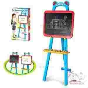 Rewelacyjna tablica na sztaludze 3 in 1 to super narzędzie edukacyjne, które pozwoli dziecku oswoić się z pisaniem. Świetnie poprawia kreatywność dziecka oraz wpływa na jego wyobraźnię. Na tablicy można rysować i pisać za pomocą kredy oraz za pomocą dołączonych literek z magnesami. Tablica posiada dwie powierzchnie do zabawy: czarną i białą. Na czarnej mamy możliwość rysowania kredą i ścierania rysunków za pomocą gąbki. Na białej stronie mamy tablicę, gdzie możemy używać dołączonych literek i cyferek magnetycznych. Za pomocą dołączonych magnesów, możemy uczyć dziecko liczenia i pisania. Zabawka posiada półeczkę, na której można trzymać magnesy lub kolorowe kredy. Tablica jest stabilna, bardzo dobrze wykonana, posiada zaokrąglone krawędzie. Produkt posiada Certyfikat Jakości i Bezpieczeństwa CE. ZAWARTOŚĆ: - sztaluga - tablica dwustronna - naklejki do dekoracji tablicy - dwa arkusze po 42 magnesy: * 26 literek * 10 cyferek od 0 do 9 * znak zapytania * znaki matematyczne: x, /, +, -, = - półeczka WIEK: 3 + WYMIARY: opakowanie: 53 x 32 x 7,5 cm tablica ze sztalugą: 94,5 x 44,5 x 38 cm tablica: 45 x 31 x 2 cm UWAGI: Nieodpowiednie dla dzieci w wieku poniżej 3 lat z uwagi na małe elementy i ryzyko udławienia. Produkt zawiera małe magnesy. W przypadku połknięcia należy natychmiast zasięgnąć porady lekarskiej. Należy usunąć opakowanie przed podaniem zabawki dziecku.