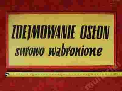Tablica PRL Zdejmowanie osłon surowo wzbronione