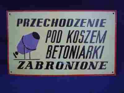 Tablica PRZECHODZENIE POD KOSZEM BETONIARKI ...