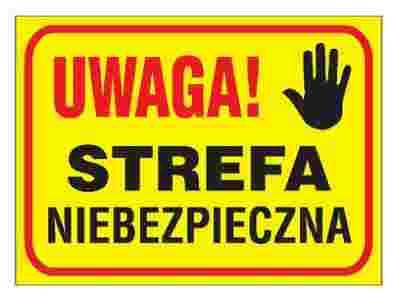 Tablica UWAGA STREFA NIEBEZPIECZNA znak tabliczka