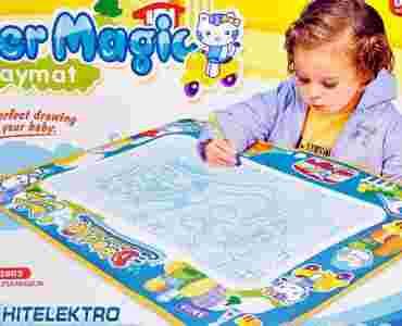 Wystarczy napełnić mazak czystą wodą i rysować, by rysunek zniknął z maty, wystarczy chwilkę poczekać, aż woda wyschnie i zabawę można zacząć od nowa.