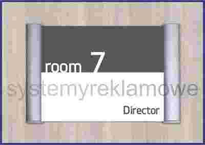 Tabliczka na drzwi wykonana z lekkich aluminiowych profili o szer. 25 mm.