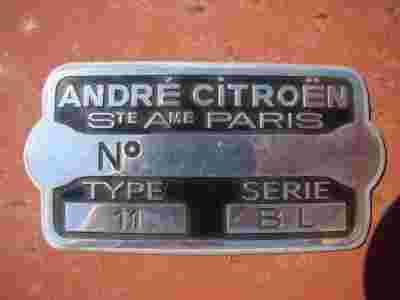 Tabliczka nadwozia Citroen Traction Avant BL 11 15