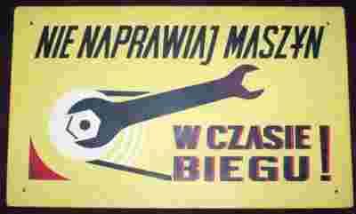 TABLICZKA PRL NIE NAPRAWIAJ MASZYN W CZASIE BIEGU