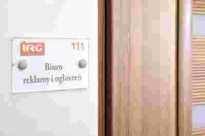 dwie warstwy bezbarwnej pleksi o grubości 1,5 mm, pomiędzy które wkładamy kartkę z informacją (nazwa działu, nazwiska pracowników danego biura itp.)