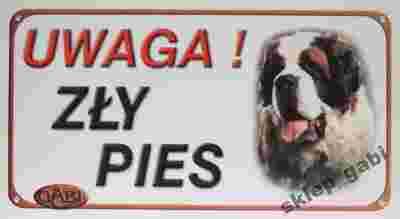 Tabliczka UWAGA ZŁY PIES ! ------------ BERNARDYN