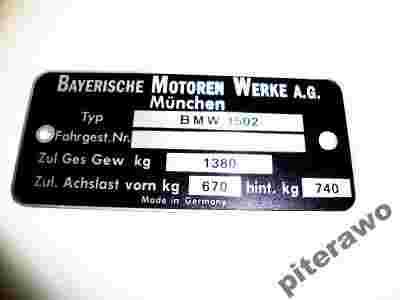 TABLICZKA ZNAMIONOWA BMW 1502
