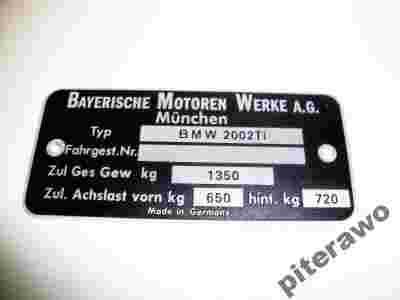 TABLICZKA ZNAMIONOWA BMW 2002 TI 2002 TI