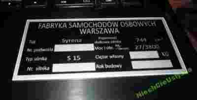 Tabliczka znamionowa, FSO Syrena 100 [zasłonięte] 102