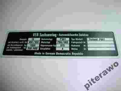 TABLICZKA ZNAMIONOWA TRABANT P601 P 601 NOWA