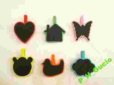 Tabliczki do pisania kredą 6 szt KOLOROWE spinacz