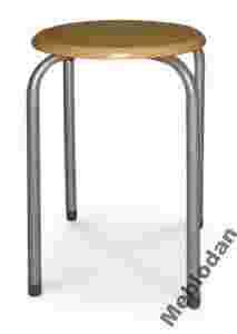 Taboret z drewnianym siedziskiem, aluminiowym stelażem oraz możliwością sztaplowania (piętrowania).