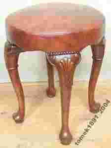 TABORET CHIPPENDALE - ORZECHOWY w SKÓRZE
