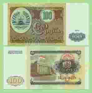Tadżykistan , 100 Rubli 1994 , P6a , stan I (UNC)