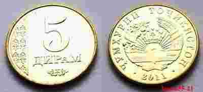 TADŻYKISTAN 5 DIRAM 2011 NOWOŚĆ MENNICZA