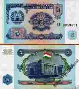 TADŻYKISTAN 5 RUBLI P2 - 1994 UNC