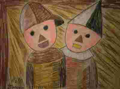 Z tyłu obrazu numer obrazu oraz podpisany Tadeusz Makowski ,,Dwoje dzieci" 1930r .
