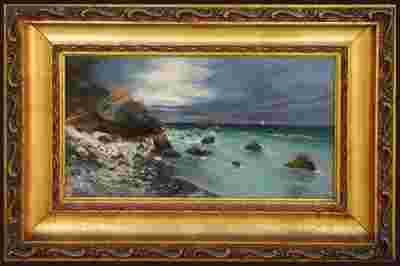 Olej na płótnie, sygn. ld. końcówką pędzla w farbie "T.Popiel" oraz na krośnie "Tadeusz Popiel". Wymiary z ramą: 54x80 cm (31x58 cm). Tadeusz Popiel (1863 Szczucin - 1913 Kraków) kształcił się w krakowskiej Szkole sztuk Pięknych (1876-84 u J. Matejki), w Wiedniu u słynnego H. Makarta oraz w Monachium (po 1885) u malarza historycznego K. Piloty`iego a także w prywatnej szkole Stanisława Grocholskiego. Mieszkał we Lwowie i w Czerniowcach. Wiele podróżował: w 1891 do Berlina, Kopenhagi, Monachium, Wiednia, Pragi; 1894 do Italii, po 1897 do Rumunii, oraz dla wykonania zamówień do Petersburga (1897), Padwy (1898-99), Kijowa i Moskwy. Malował wielopostaciowe sceny historyczne i religijne, a także pejzaże. Zajmował się także malarstwem ściennym i witrażami.
