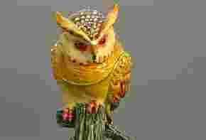 Tajemnicza sowa- urzekająca szkatułka (metal), nawiązująca do dzieł słynnego jubilera Petera Carla Faberge (1[zasłonięte]846-19).