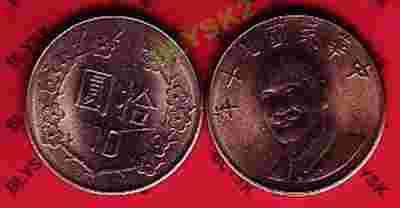 TAJWAN /KM-553/ 10 YUAN/DOLLAR Stan Monety I/-I
