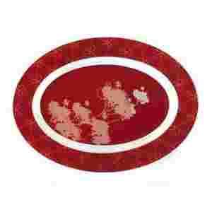 Półmisek owalny z serii Valentyne. Niezwykle oryginalna i dekoracyjna zastawa stołowa, w ciekawej kolorystyce, wykonana z nieprzezroczystego czerwonego szkła z dekoracją. Zastawa stołowa dostępna na sztuki, dzięki czemu można z jej poszczególnych elementów, komponować przydatne dla siebie zestawienia. Nadaje się do użytku w mikrofalówkach i do mycia w zmywarkach. Polecana do restauracji i do użytku prywatnego.