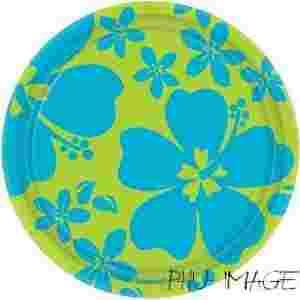 Talerzyki papierowe z nadrukiem hawajskim.