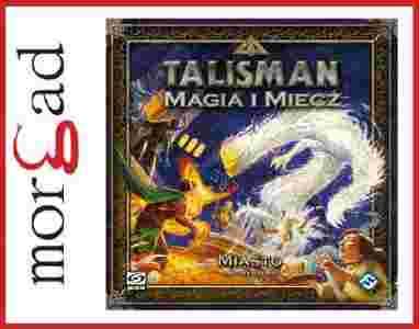 Talisman: Magia i Miecz Miasto wprowadza do gry Talisman: Magia i Miecz nową planszę, gwarną metropolię, którą dołącza się do podstawowej planszy gry, a do której można dostać się przez obszar Miasta. Wprowadza również sześciu kompletnie nowych Poszukiwaczy, trzy karty Alternatywnych Zakończeń, tematyczną talię kart Miasta oraz ogrom talii sklepów, w których znajduje się wszystko, czego byś kiedykolwiek potrzebował, a nawet więcej! Odwiedzając Miejską Bramę i odbierając nagrody ze swoich listów gończych szybko się wzbogacisz, dzięki czemu będziesz mógł wyruszyć na poszukiwania Korony Władzy szybciej niż inni awanturnicy. Zaopatrz się w wierzchowca, wiernych chowańców i kilka fiołek z eliksirami albo pokieruj swe kroki ku Magicznemu Emporium lub płatnerzowi po cięższy i bardziej wiarygodny sprzęt. Ale uważaj, wysokie mury nie obronią cię przed niebezpieczeństwami, które kryją się po ulicach i zakamarkach Miasta, a jest ich pełno.