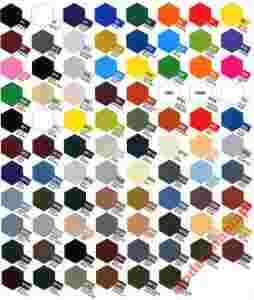 XF-1 Flat Black XF-2 Flat White XF-3 Flat Yellow XF-4 Yellow Green XF-5 Flat Green XF-6 Copper XF-7 Flat Red XF-8 Flat Blue XF-9 Hull Red XF-10 Flat Brown XF-11 J.N. Green XF-12 J.N. Grey XF-13 J.A. Green XF-14 J.A. Gray XF-15 Flat Flesh XF-16 Flat Aluminum XF-17 Sea Blue XF-18 Medium Blue XF-19 Sky Grey XF-20 Medium Gray XF-21 Sky XF-22 RLM Gray XF-23 Light Blue XF-24 Dark Gray XF-25 Light Sea Gray XF-26 Deep Green XF-27 Black Green XF-28 Dark Copper XF-49 Khaki XF-50 Field Blue XF-51 Khaki Drab XF-52 Earth XF-53 Neutral Gray XF-54 Dark Sea Gray XF-55 Deck Tan XF-56 Metallic Grey XF-57 Buff XF-58 Olive Green XF-59 Desert Yellow XF-60 Dark Yellow XF-61 Dark Green XF-63 German Grey XF-64 Red Brown XF-65 Field Gray XF-66 Light Grey XF-67 NATO Green XF-68 NATO Brown XF-69 NATO Black XF-70 Dark Green2 XF-71 Cockpit Green XF-72 Brown (JGSDF) XF-73 Dark Green (JGSDF) XF-74 Olive Drab XF-75 Gray XF-76 Gray-Green IJN XF-77 Gray IJN XF-78 Wooden Deck Tan XF-79 Linoleum Deck Brown XF-80 Royal Navy Grey XF-81 Dark Green 2 RAF XF-82 Ocean Grey 2 RAF XF-83 Medium Sea Gray XF-84 Dark Iron XF-85 Rubber Black