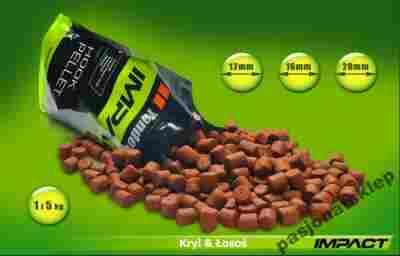 Najwyższej jakości haczykowy granulat o lekko czerwono-brązowym kolorze, który zawdzięcza mączce z kryla. Dostarcza wszystkie bezcenne własności łososia i kryla, co stawia go w rzędzie najlepszych i najskuteczniejszych pelletów na rynku. Wyśmienitej jakości mączka rybna o wysokiej zawartości rozpuszczalnych protein, olej rybny, małże, mączka krylowa i łososiowy zapach, powodują że granulat przyciąga ryby z magiczną siłą. Idealnie wytłoczony okrągły otwór, umożliwia stosowanie pelletu bezpośrednio na włos. Dobrze zbilansowany skład i właściwości fizyczne powodują, iż IHP Łosoś &Kryl jest twardy i stabilny w wodzie przez wiele godzin (czas rozpuszczania, zależny od średnicy i temperatury wody, od 10-20 godzin.)