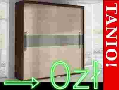 Nowoczesna szafa przesuwna TARANTO z płyty wiórowej laminowanej. Na froncie szafy znajduje się ozdobny pas wykonany ze szkła. Istnieje możliwość wyboru koloru szkła. Szafa wyposażona jest praktyczne półeczki oraz drążek na wieszaki.