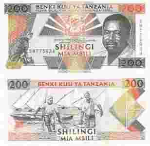 TANZANIA 200 SHILLINGS 1993 P-25 SIGN 11 UNC