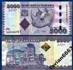 TANZANIA 5000 SHILINGOW 2010 r. P-43 UNC