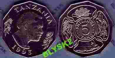 TANZANIA /KM-23a.2/ 5 SHILINGI 1993 Rośliny-Bawó