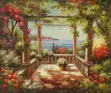 Dużej urody impresjonistyczny pejzaż malowany farbami olejnymi na płótnie.