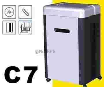 Urządzenie zostało zaprojektowane do niszczenia papieru, płyt CD. Dzięki otworowi o szerokość 240 mm zmieści dokumenty o dużej wielkości. Wiele automatycznych funkcji znacznie podnosi komfort pracy użytkownika: automatyczne zatrzymanie pracy i uruchomienie sygnału w momencie otwarcia pojemnika, funkcja ręcznego cofania, zabezpieczenie przed przegrzaniem silnika, czujnik wejścia (fotokomórka), automatyczny stop i sygnał dźwiękowy w momencie przepełnienia kosza, automatyczna funkcja cofania papieru w momencie zablokowania papieru przez przepełnienie pojemnika, automatyczny start/stop, specjalnie utwardzony stalowy mechanizm tnący pozwalający na niszczenie: papieru (do 17 arkuszy jednocześnie), kart plastikowych, zszywek, spinaczy, płyt CD. Niszczarka charakteryzuje się dużą skutecznością niszczenia. Jest bardzo cicha.