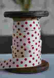 TASIEMKA rypsowa ecru w czerwone grochy 1,99
