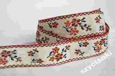 TASIEMKA TAŚMA HAFTOWANA 24mm BRĄZ/ECRU 1m