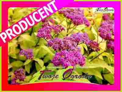 Zwarty, płasko-kulisty krzew dorastający do 50 cm wys. Liście intensywnie żółte przez cały okres wegetacji. Kwitnie obficie latem. Kwiaty różowe, w płaskich kwiatostanach. Krzew nie przemarza i może rosnąc na podłożu bardziej suchym.