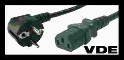 Fabrycznie nowy, wysokiej jakości (gruby), profesjonalny kabel zasilający VDE (sieciowy) stosowany do podłączenia komputera PC, monitora, telewizora, drukarki, skanera, faksu, zasilacza, UPS (zasilacza awaryjnego), serwera itp. do gniazda zasilania.