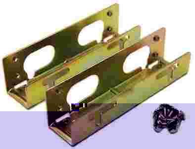 ADAPTER HDD SANKI 5,25" -> 3,5" Fabrycznie nowy komplet szyn metalowych (2 sztuki szyn + śruby) ze śrubami do montażu dysku twardego 3,5" w slocie dla dysku 5,25''. Konwerter stosujemy gdy w obudowie brakuje miejsca na dodatkowy dysk HDD lub inne urządzenie. Adapter umożliwia rozłożenie napędów HDD 3.5 w większych odległościach od siebie - poprawiają chłodzenie dysku przez co przedłużają jego żywotność. Szyny pozwalające na zamocowanie wszystkich urządzeń 3,5" (DYSK HDD, NAPĘD FDD ITP) w obudowie/kieszeni 5,25". W zestawie znajdują się śrubki mocujące. Wysokiej jakości, wytrzymałe ramki metalowe zawierające elementy mocujące. Zestaw umożliwiający montaż dysku twardego 3,5" w gnieździe 5,25". Wymiary - ok 95mm x 27mm x 22mm.