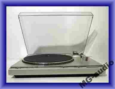 Przedmiotem licytacji jest oryginalny japoński, w pełni automatyczny gramofon Technics SL-B300. Gramofon używany, w pełni sprawny technicznie. Stan zewnętrzny bardzo dobry (minimalne ryski na pokrywie, oraz rysa w okolicy regulatora prędkości). Dokładny stan - patrz zdjęcia. Gramofon posiada sprawną wkładkę oraz igłę Technics P27, wyposażony jest w napęd paskowy, w pełni elektroniczną regulację obrotów (33/45) oraz stroboskop. Posiada w pełni automatyczne sterowanie (START/STOP) oraz automatyczny wybór wielkości płyty. Dodatkowo posiada tryb REPEAT do ciągłego odtwarzania płyty. Przy pokrywie ukruszony kawalek lopatki zawiasu, lecz absolutnie nie przeszkadza to w prawidlowym trzymaniu pokrywy.