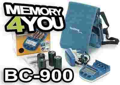 BC-900 to procesrowa ładowarka z wyświetlaczem LCD, przeznaczona do ładowania ogniw Ni-Cd oraz Ni-Mh o rozmiarze R6/AA lub R03/AAA, z funkcją rozładowania, odświerzania i pomiaru pojemności