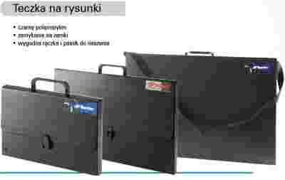 Kolor czarny, wykonana z tworzywa falistego , solidna , doskonale chroni rysunki , z rączką , klapa zamykana na plastikowy zatrzask.