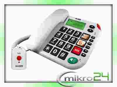 • Telefon głośnomówiący z dużymi przyciskami i pilotem SOS