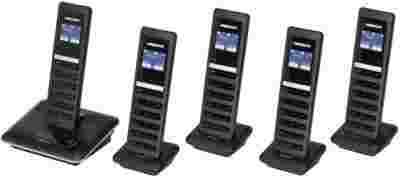 - Możliwość współpracy do 5 słuchawek z 4 stacjami bazowymi /funkcje konferencyjne, przenoszenie połączeń między słuchawkami/