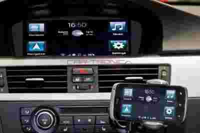 - Wszystkie funkcje smartfonu pojawią się na wyświetlaczu w samochodzie poprzez oryginalny system kontroli samochodu (i-Drive)