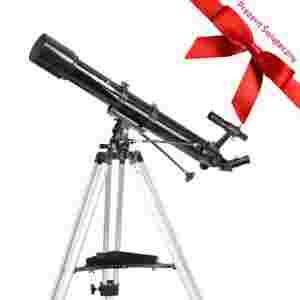 Teleskop soczewkowy przeznaczony dla początkujących miłośników astronomii jak i dla osób potrzebujących sprzętu do obserwacji krajobrazowych. Przy średnicy 90mm jest to teleskop który potrafi nieco więcej niż podstawowe modele o średnicy 70mm. Większy zasięg gwiazdowy i lepsza rozdzielczość pozwalają dostrzec więcej obiektów przy lepszej jakości obrazów. Jest to teleskop o światłosile f/10 o ogniskowej 900mm. W zestawie z montażem AZ3 jest to teleskop lekki, niekłopotliwy w przenoszeniu i przewożeniu. Wyposażony w nasadkę pryzmatyczną 1.25" pozwala uzyskać obraz ziemski, nieodwrócony.