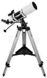 Bardzo jasny refraktor achromatyczny 105 mm f/5 na bardzo sztywnym montażu azymutalnym klasy AZ-3 z mikroruchami i solidnym trójnogu polowym. Wyśmienity teleskop do obserwacji wizualnych zarówno planet, a także do przeglądu najważniejszych kilkudziesięciu obiektów głębokiego nieba.