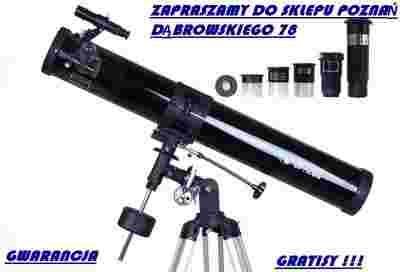 Instrument edukacyjny rekomendowany przez ekspertów Idealny na prezent Teleskop zwierciadlany osadzony na statywie z profesjonalną głowicą EQ-II, polecany zarówno początkującym jak i zaawansowanym miłośnikom astronomii. Zwierciadło główne o średnicy 76 mm oraz ogniskowa 900 mm zapewniają bardzo dobre osiągi, co w połączeniu z wysoką jakością soczewek gwarantuje jasne, wyraźne i kontrastowe obrazygwiazd, planet oraz Księżyca. Sprzęt ten dorównuje bardzo udanemu modelowi Horizon EX, a dodatkowo przewyższa go możliwością wygodnego śledzenia obiektów na niebie za pomocą precyzyjnych mikroruchów. Głowica EQ-II ułatwia odnajdywanie obiektów na niebie na podstawie współrzędnych odczytanych z atlasu gwiazd. Teleskop Zodiac wyposażono w aż 3 wymienne okulary oraz soczewkę Barlowa podwajającą zakres dostępnych powiększeń. Sprzęt jest przystosowany do obsługi profesjonalnych podzespołów w standardzie 1,25'', dzięki czemu możliwa jest stopniowa rozbudowa zestawu o dodatkowe akcesoria. Zastosowania tego wszechstronnego instrumentu nie ograniczają się wyłącznie do astronomii. Dzięki znajdującej się w zestawie soczewce prostującej, teleskop może spełniać funkcję lunety do obserwacji przyrodniczych i krajobrazowych (oglądania ptaków, samolotów, odległych budynków etc.). Z myślą o początkujących adeptach astronomii Opticon dodaje do teleskopów specjalny pakiet gratisów. Znajdziesz z nim wszystko co niezbędne do zanurzenia się w pięknie kosmosu: mapy nieba, programy komputerowe, poradniki praktyczne, film dokumentalny w HD na płycie DVDoraz wspaniałą, oraz bogato ilustrowaną książkę „Szlakiem gwiazd”, napisaną przez ekspertów i zawierającą wiele cennych wskazówek. Tylko teraz otrzymasz także ekskluzywną trójwymiarową galerię oraz okulary 3D. Wszystkie teleskopy Opticon są testowane przez specjalistów oraz objęte pełną dwuletnią gwarancją producenta. Teleskop Opticon znalazł się na pierwszej stronie artykułu w prestiżowym magazynie LOGO (nr 10/2011).